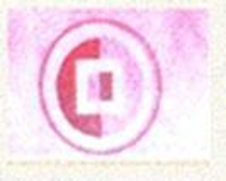 (2)胶印对印图案:正面左下角和背面右下角均有一圆形局部图案,迎光透视,可以看到正背面的局部图案合并为一个完整的古钱币图案。