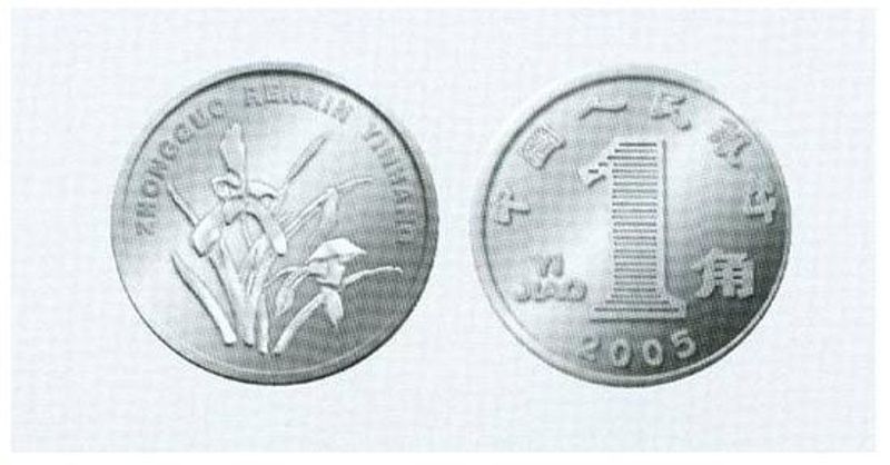 4.背面主景图案下方的面额数字后面,增加人民币单位元的汉语拼音“YUAN”;年号改为“2005年”。